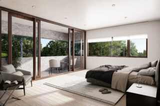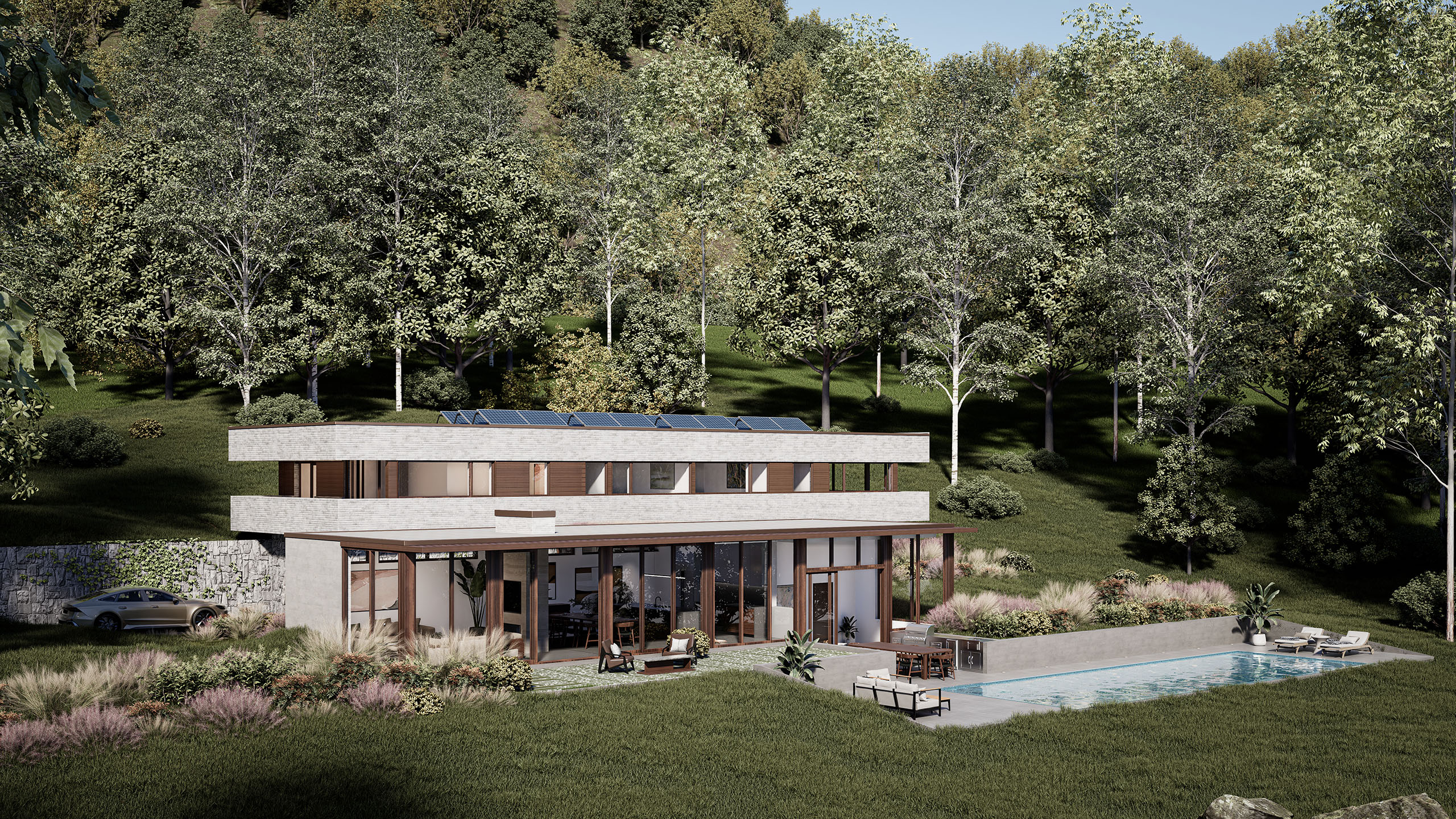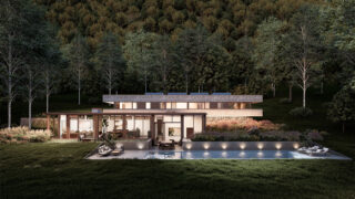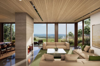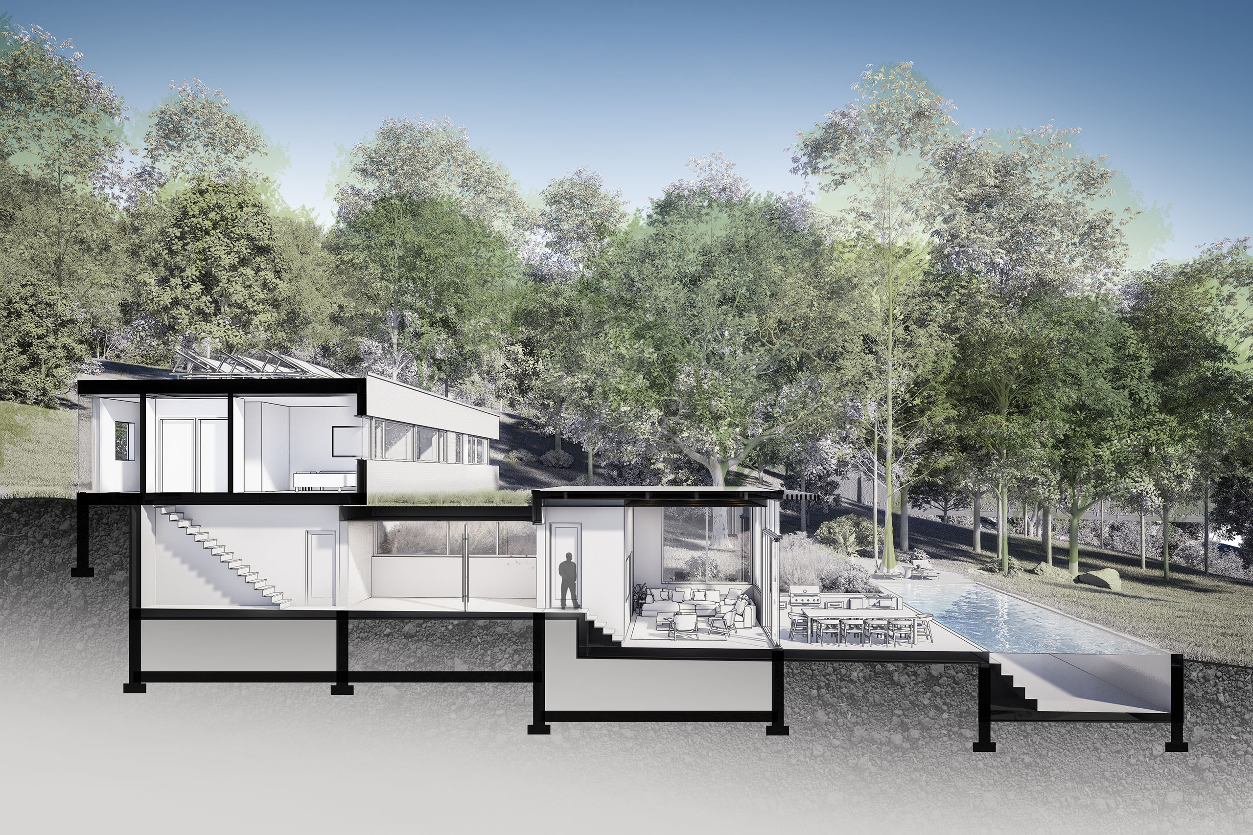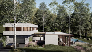 Cascade Residence is part of the third round of Hudson Valley residences, designed and developed by Palette. With our increasing understanding of the region’s unique blend of natural beauty, energetic culture, and proximity to major metropolitan areas, we found an incredible site for three planned houses in Amenia. This first house sits on a sloped site, and is designed to take full advantage of magnificent views across a wooded valley to mountains beyond.