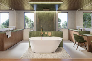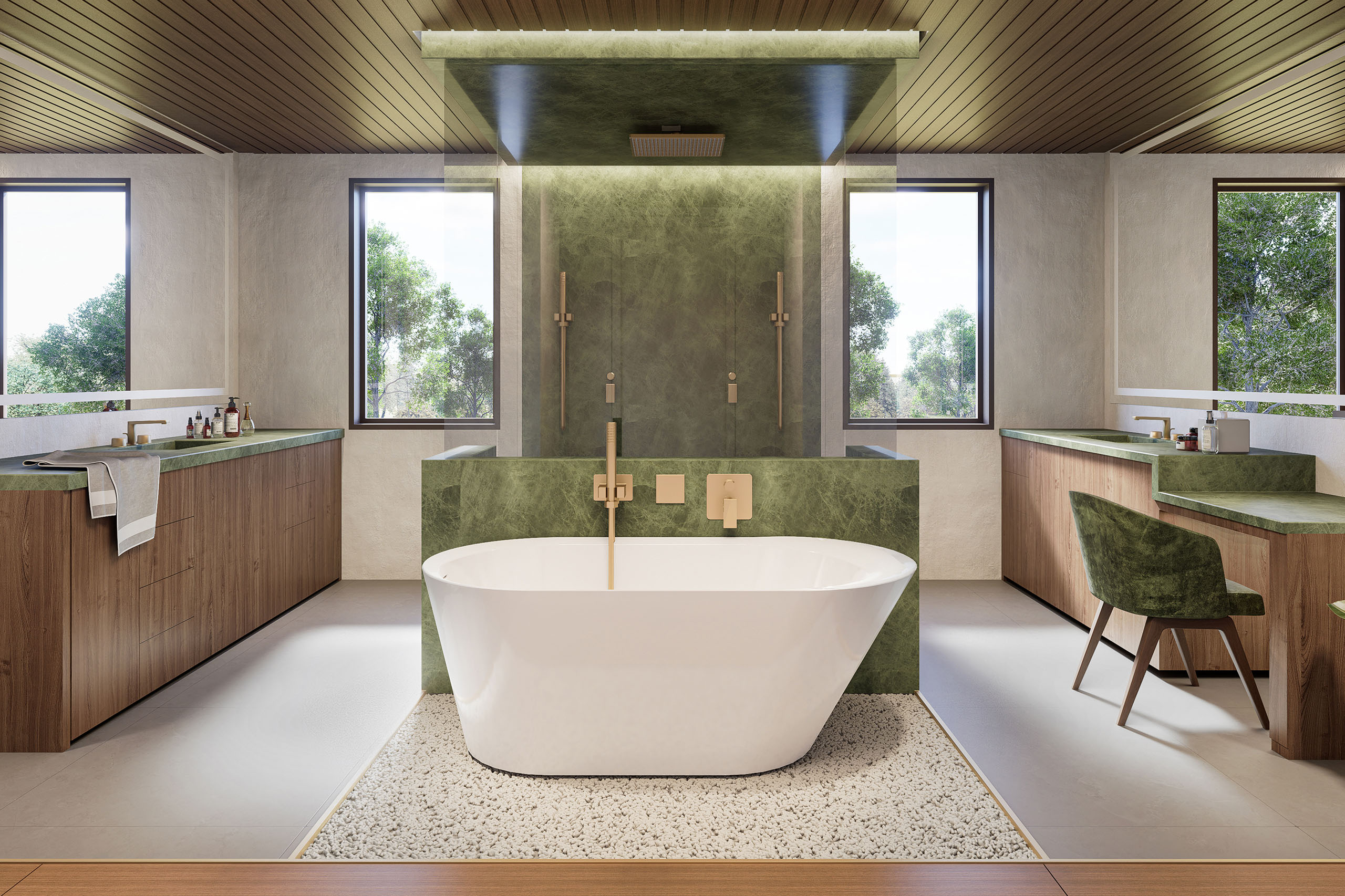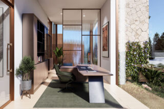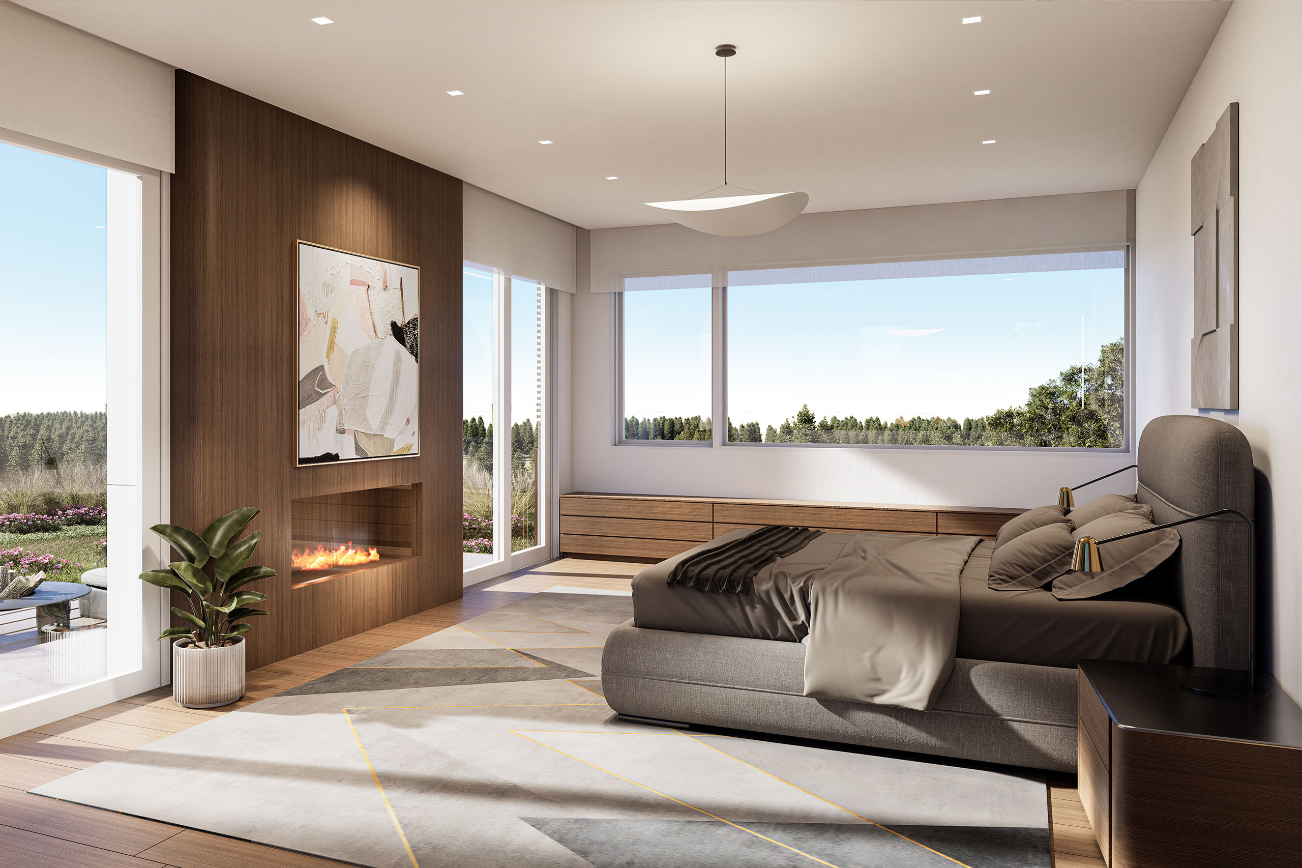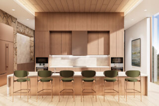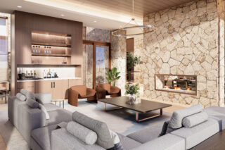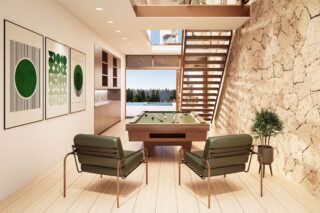Crestline offers a daily retreat where architecture and nature exist in balance. Social spaces hover above the hilltop, oriented to capture sunsets over the Catskills, while private rooms retreat into more sheltered zones of stone and wood. Each space is paired with its own outdoor counterpart—terraces, gardens, and patios that open to fresh air and views. Whether gathering in the glass-wrapped pavilion, retreating to the library, or stepping into the landscape at dawn, the living experience is defined by a constant dialogue with nature. Here, modern design heightens awareness of the Hudson Valley’s timeless beauty, transforming every moment into a connection with the land.