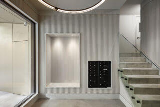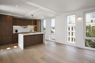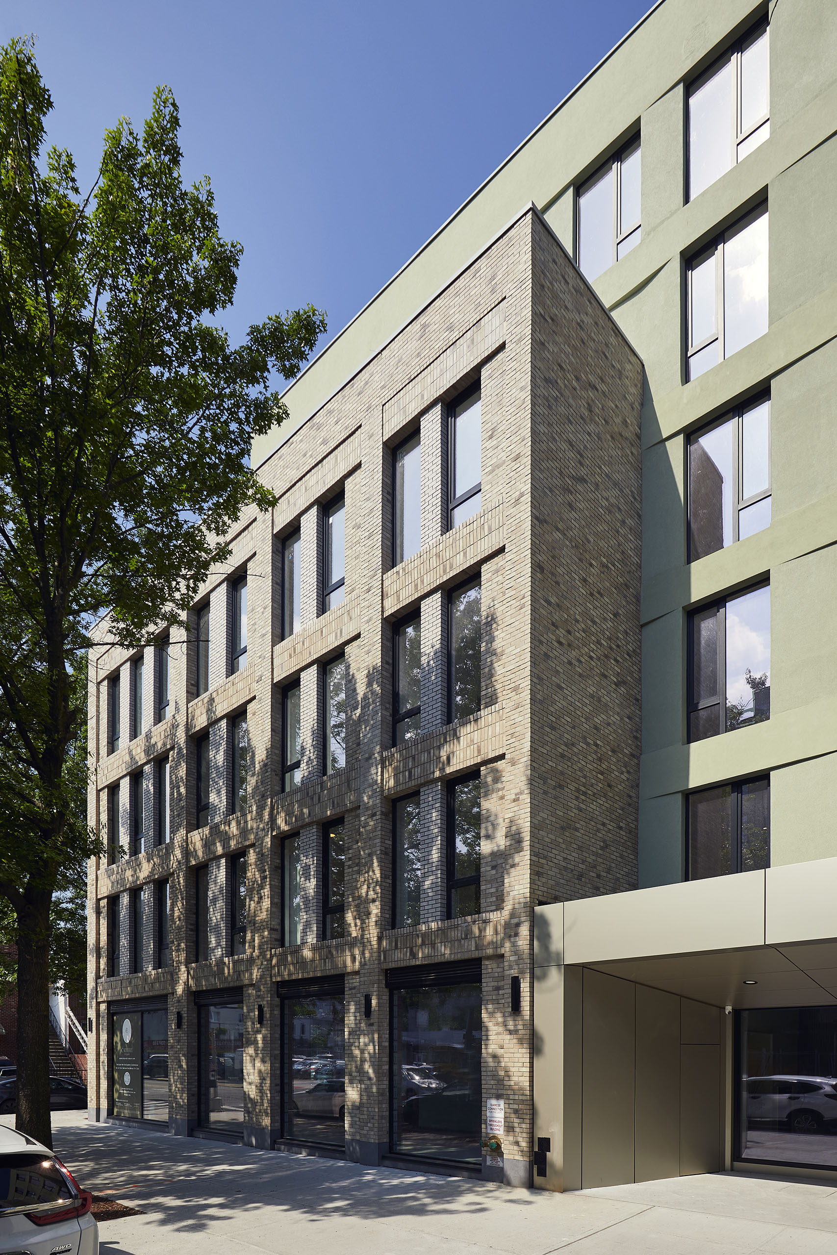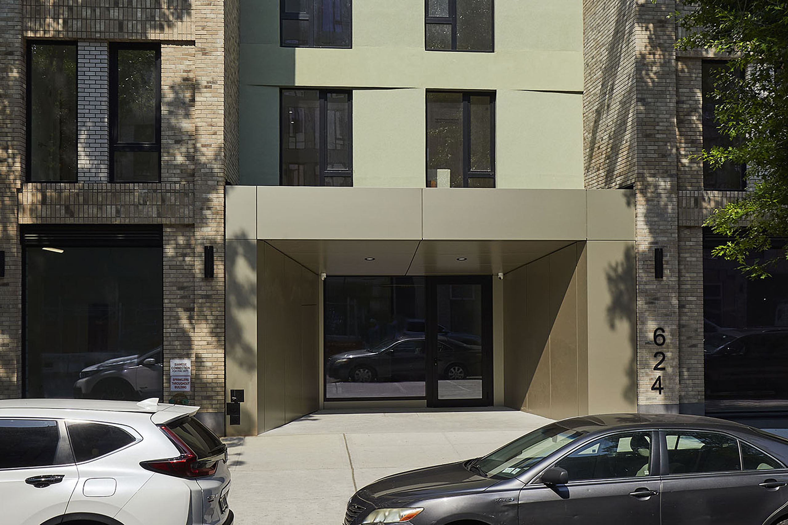 The Calvert Collection is a residential development comprised of two new buildings, located across the street from one another in the Prospect Lefferts Gardens neighborhood of Brooklyn. The design centers around three themes intended to enhance the residential experience: connection to the exterior, amenities, and character of the units. The design incorporates outdoor spaces such as room-sized roof terraces and recessed balconies, and amenities such as mailrooms, package rooms, work-from-home pods, gym, and recreation rooms. The buildings will share a single parking lot, located on the eastern site.