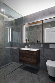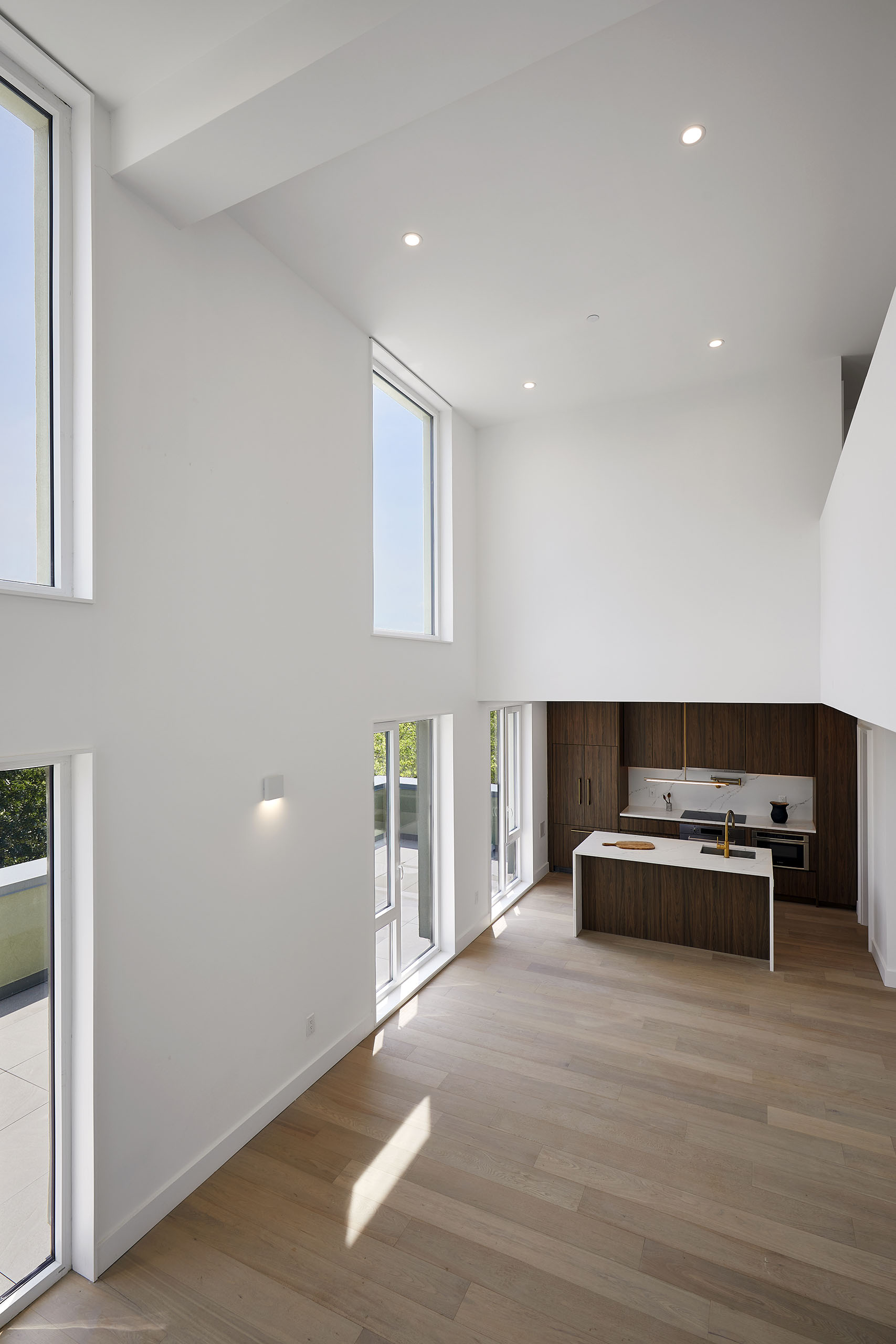 The design of the development is centered on the three themes for enhancing the resident experience. Connection to the Exterior is aimed to maximize the number of units with private outdoor spaces, which are large enough for extended periods of time and change the character of the interior living spaces. Amenities includes architectural moves to elevate the relatively small program of residential entrance, mailroom, package room, work from home pods, open seating arrangements, gym, dining room, recreation room, and parking. The shared amenity spaces give residents access to a wider range of activities within the building, accentuated by tying them into a high ceiling atrium space and a public courtyard. For Character of the Unit, the design is aimed to create units with double height spaces, units that are on multiple levels, and units that have windows in multiple directions to improve the resident experience.